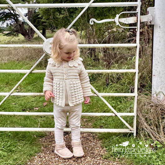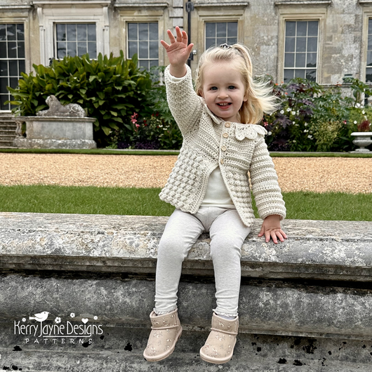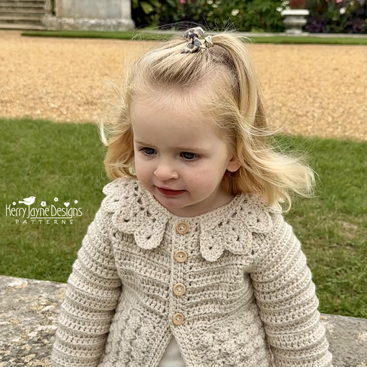 Absolutely beautiful cardigan with a fabulous collar. I have a lot of Kerry Jayne patterns and find them easy to understand and follow. I would highly recommend
