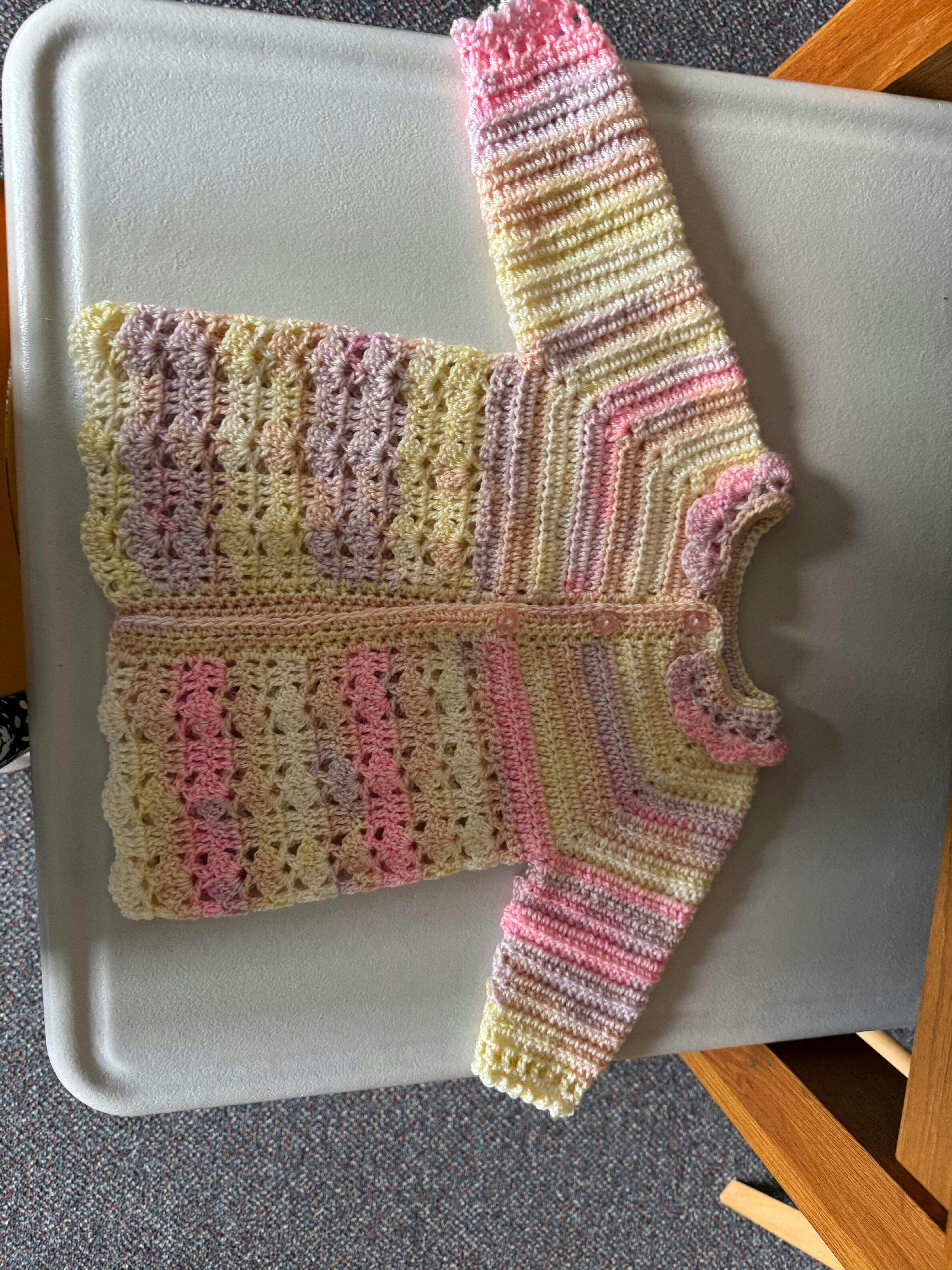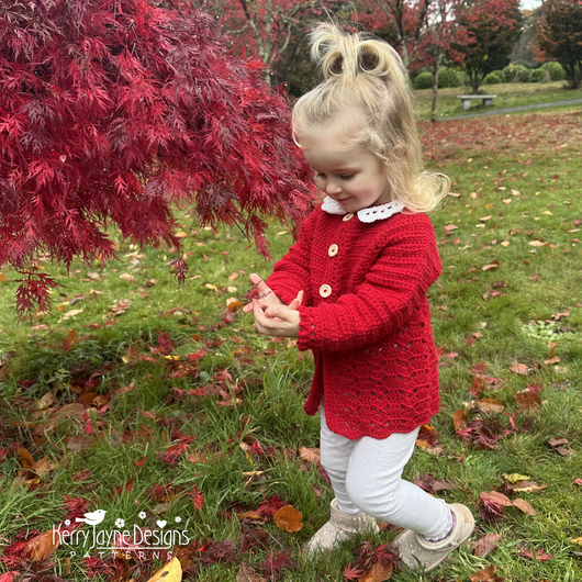 The Queen Charlotte cardigan matches beautifully with the Queen charlotte Blanket and Bonnet/Hat Pattern (can be seen in final photo, available in a separate pattern)